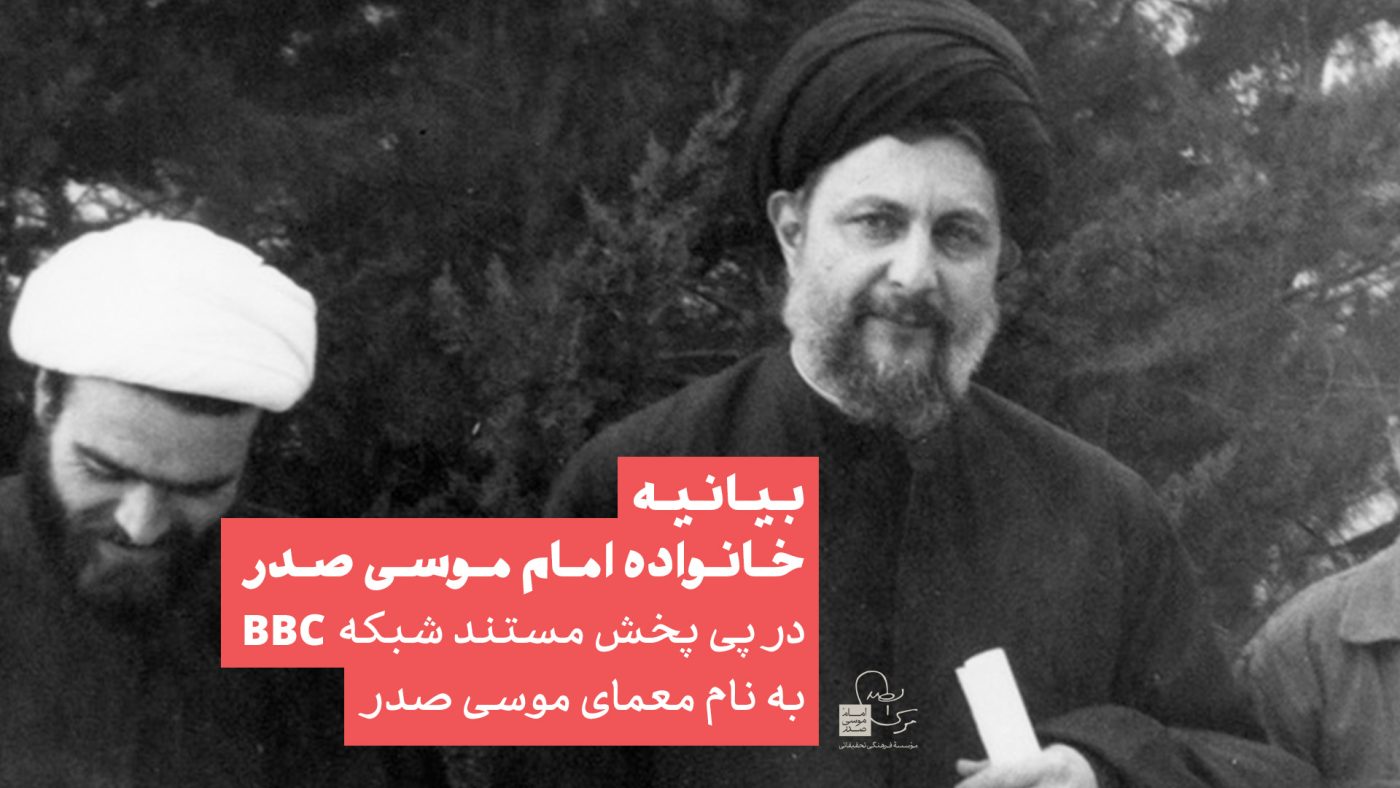 بامداد امروز سهشنبه ۲ سپتامبر ۲۰۲۵ شبکهٔ BBC مستندی از امام موسی صدر با حضور خانوادهٔ امام پخش کرده است؛ این خانواده با هدف خدمت به پروندهٔ امام و دو همراهش همهٔ تصاویر، مستندات و امکاناتش را در اختیار تیم مستندساز قرار داد. همچنین دبیر کمیتهٔ رسمی پیگیری پرونده، قاضی حسن شامی، با هدف توضیح همهٔ ابهامها در مستند شرکت کرد.