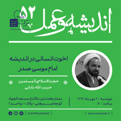 پنجاه و دومین درسگفتار اندیشه و عمل با موضوع «اخوت انسانی در اندیشه امام موسی [...]