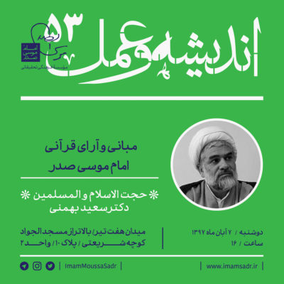 پنجاه و سومین درسگفتار اندیشه و عمل با موضوع «مبانی و آرا قرآنی امام موسی [...]
