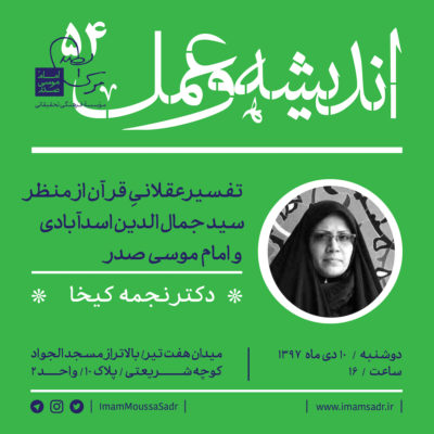 پنجاهوچهارمین درسگفتار ماهانه اندیشه و عمل با سخنرانی دکتر نجمه کیخا و موضوع «تفسیر عقلانی [...]